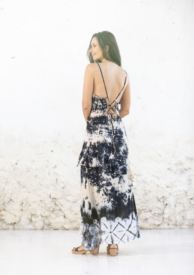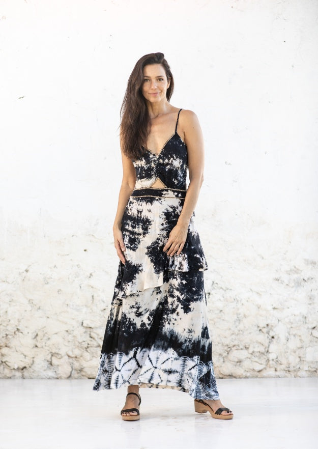 Puedes usarlo solo o con una chaqueta corta, inspirado en Brasil, el vestido Abai está diseñado para acompañarte en todas tus aventuras. El estampado floreado de dos tonos y detalles finos se asegurarán de ello. Con lazos ajustables creando un aspecto impresionante en la espalda mientras la halagadora falda lujosa con volados agrega un toque de elegancia.