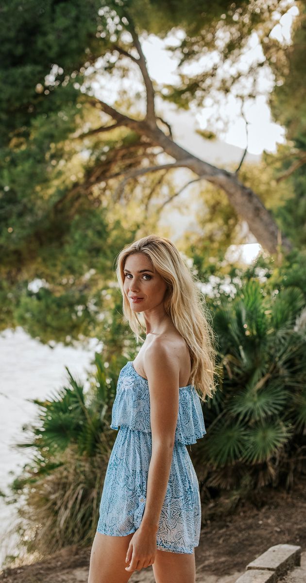 La combinaison courte Aysel nous rappelle la mode du bord de mer des côtes du Sud de la France dans les années 1930, avec ses fines rayures horizontales et ses broderies complexes sur la poitrine à volants. Elle est dotée d'un élastique à la taille pour un ajustement parfait et le joli nœud papillon au dos rend cette combinaison confortable tout à fait unique.