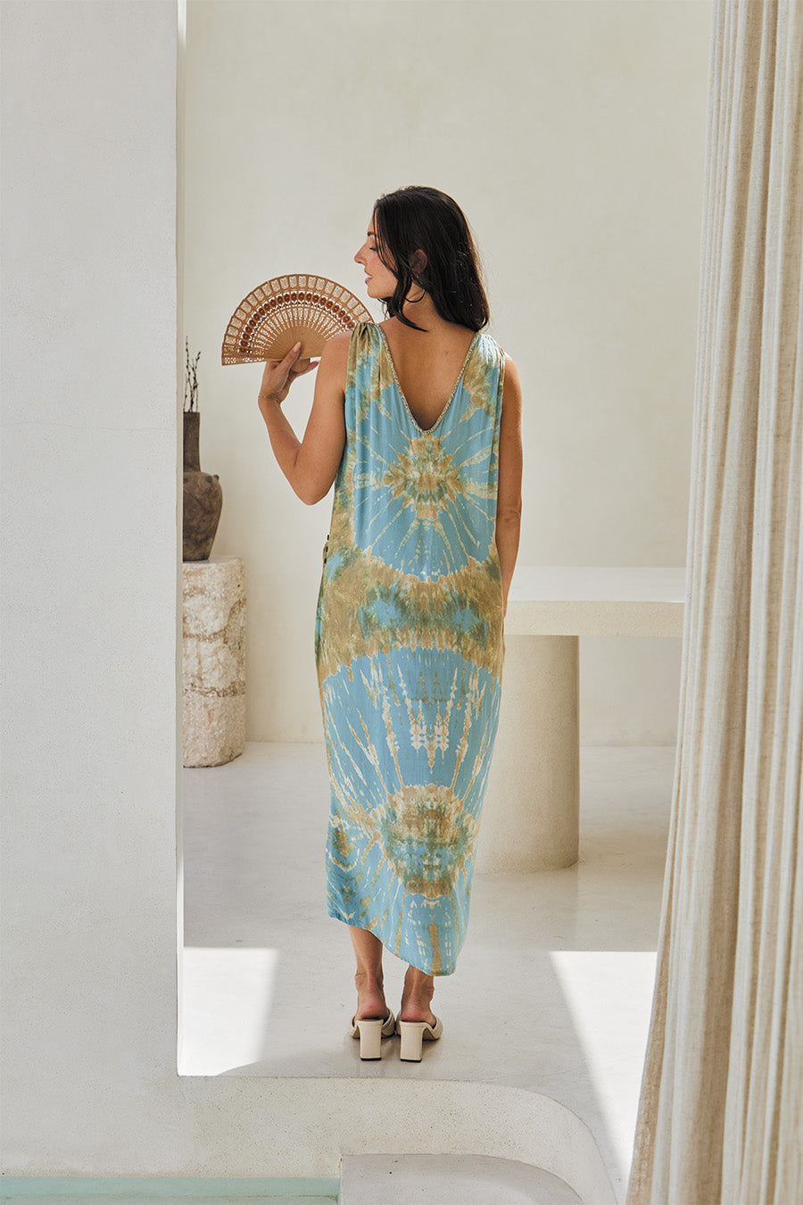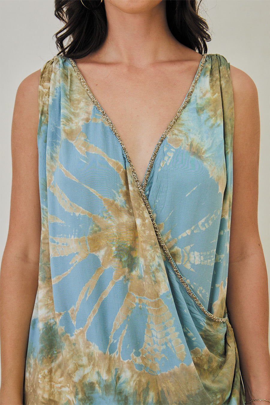 Cypress gets a bold update in this Funky Tie Dye version. Featuring a deep V neckline, draped front and exposed back, it flatters the body while keeping things cool and breezy.