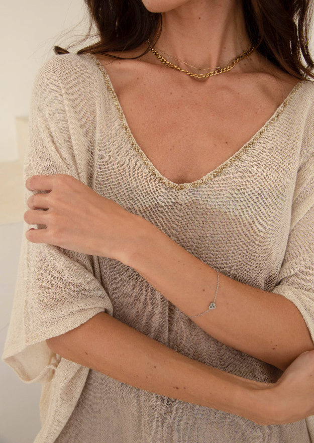 The softness of the fabric against your skin evokes a sense of pure luxury, while the understated design and subtle details enhance your natural allure. Whether you're lounging poolside or wandering through a sun-drenched market, this poncho envelops you in a timeless aura of bohemian chic and femininity. Available in Beige.