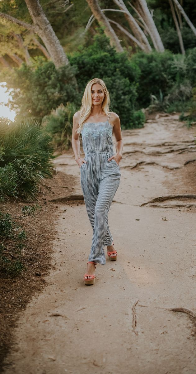 Une élégance mignonne à la française, nous vous présentons notre combinaison Rosa. Son design nous rappelle la mode du bord de mer des années 1930 sur la côte du sud de la France avec ses fines rayures horizontales et ses broderies complexes sur la poitrine. La taille est élastiquée pour un ajustement parfait et le joli nœud papillon au dos rend cette combinaison confortable tout à fait unique.