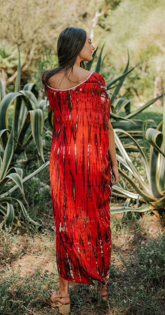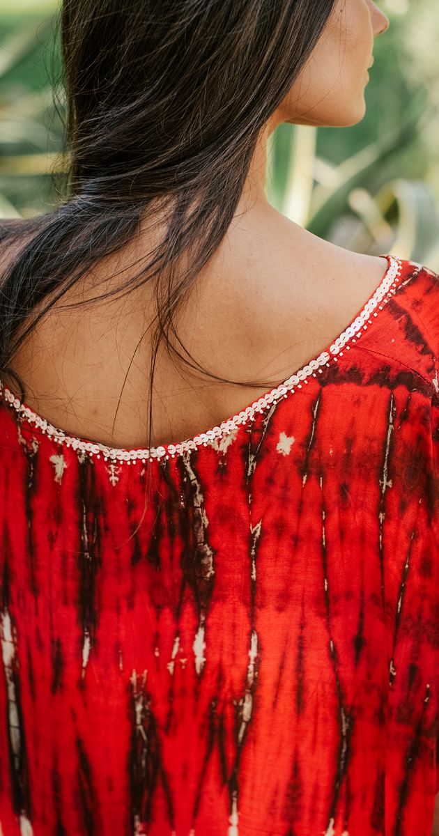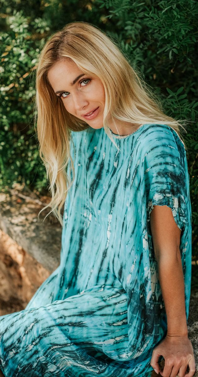 Un altro capo preferito della nostra collezione batik è il facile Alma Long Tunique. Tessuto lungo e fluente con un'ampia scollatura impreziosita che si appoggia con nonchalance su una spalla. Questo diventerà rapidamente il tuo caftano da spiaggia preferito.