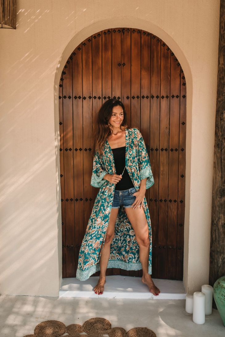 Il Chenoa Wrap-Around Long Dress è realizzato in morbidissimo rayon, con maniche stile kimono e bellissimi dettagli decorati a mano.