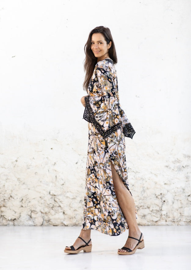 • Le maniche lunghe a campana e gli spacchi laterali gli conferiscono un aspetto sorprendente.