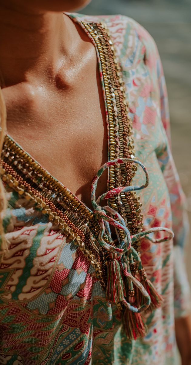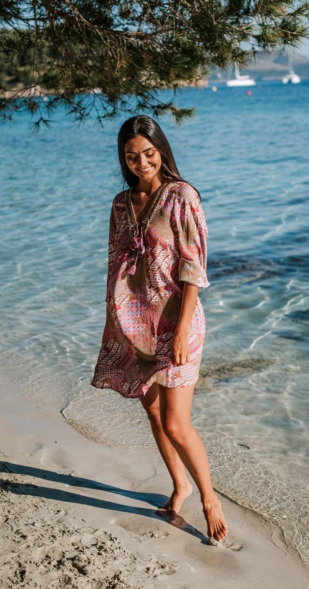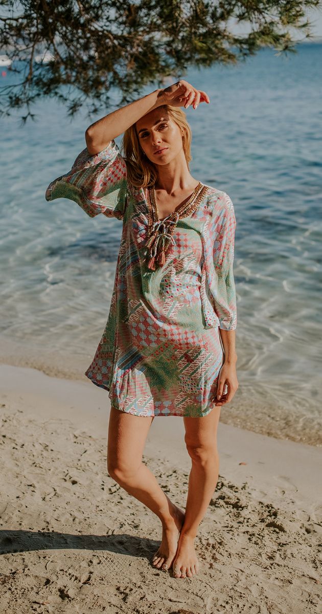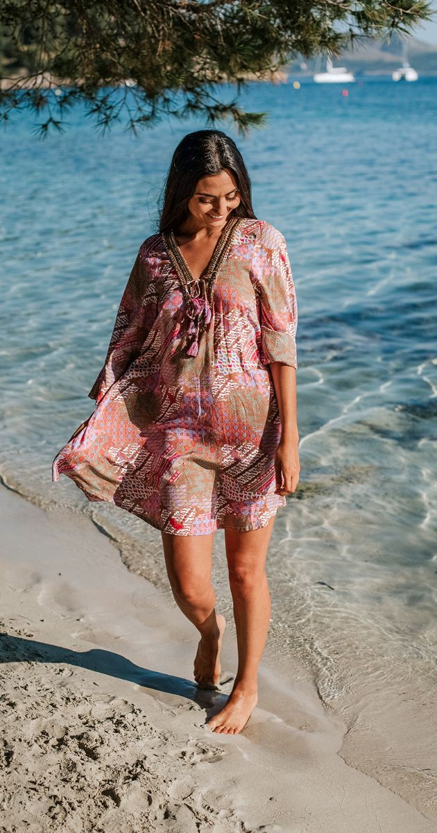 Ammirate il Tunique corto Diana in una speciale stampa etnica con molti motivi diversi.