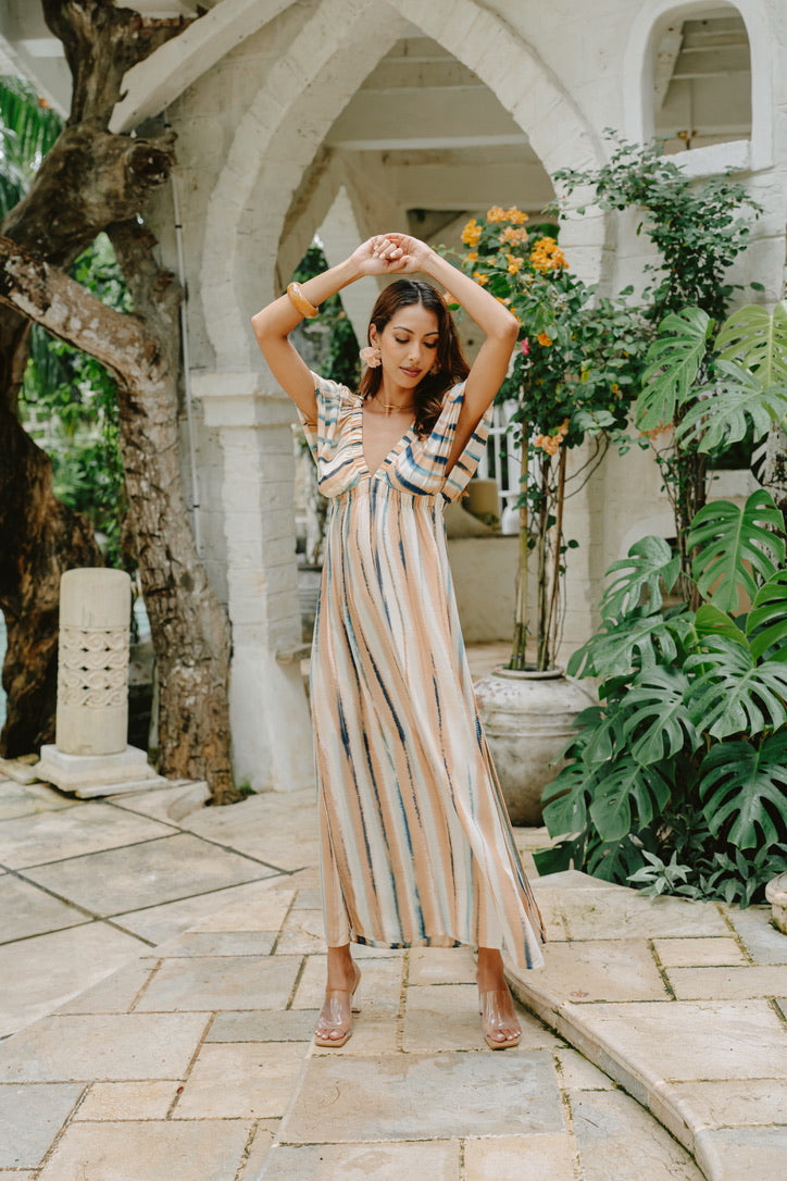 The Luzma Long Dress in Terra Flow Beige embodies the soul of Ibiza in motion. Its graceful silhouette and soft rayon voile fabric create a flowing elegance that feels naturally boho and beautifully refined. A signature Ibiza Moda piece for resort moments.