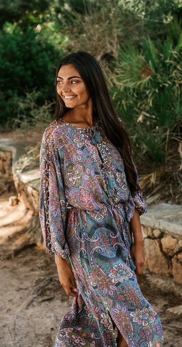 Un'ode alle psichedeliche Ibiza degli anni '70, questo vestito sarà subito al centro di qualsiasi festa quest'estate.