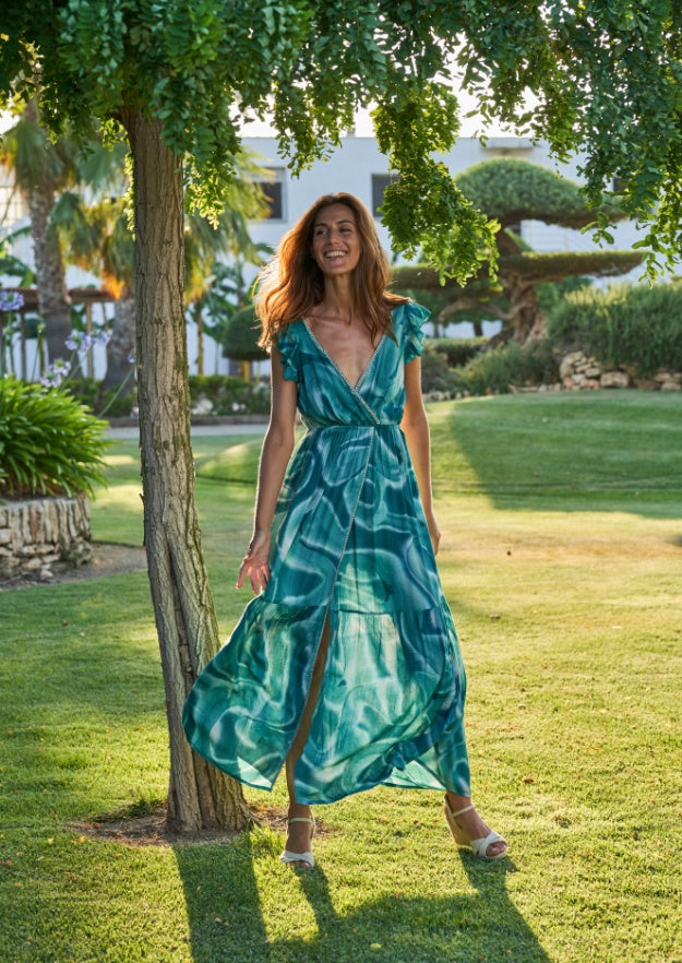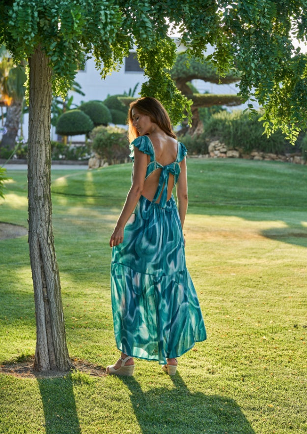 Incredibly lightweight and dreamy the Jacinda Dress is designed to be worn over a pair of leggings or your favourite jean shorts. Featuring a soft draping skirt with a front slit along the length of the leg and breezy flutter hem. Detailed straps that tie in the back give the Jacinda Dress that extra showstopper touch.