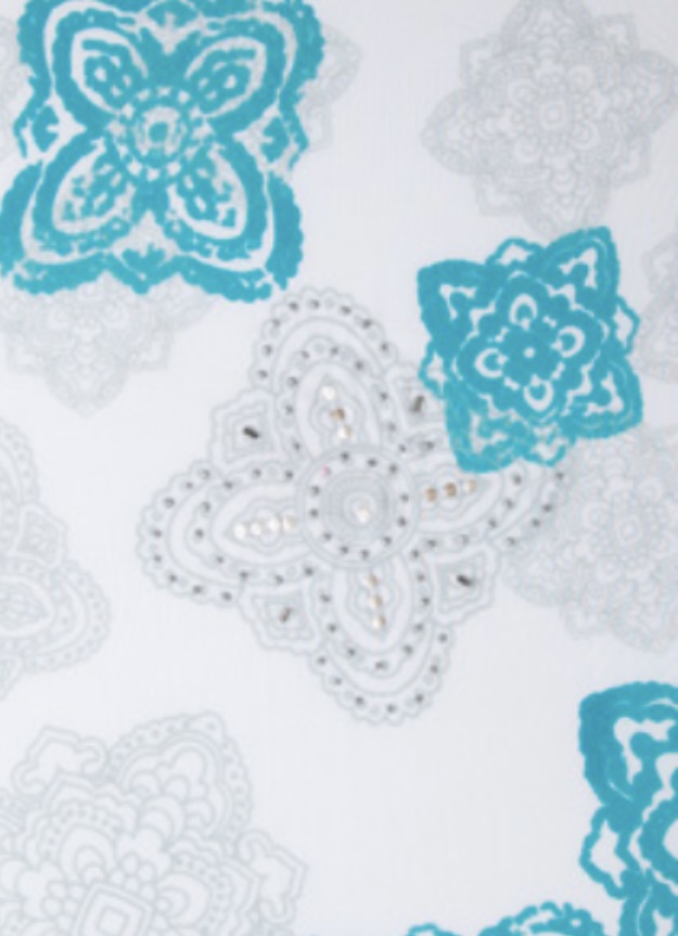 We love Georgette Stamp! And this dress has everything you need for day or night. It covers your legs but still leaves a very sexy opening. Light and delicate, thanks to the material with which it is handcrafted: %100 Rayon-Voile. This gorgeous Jade dress is also available in teal.