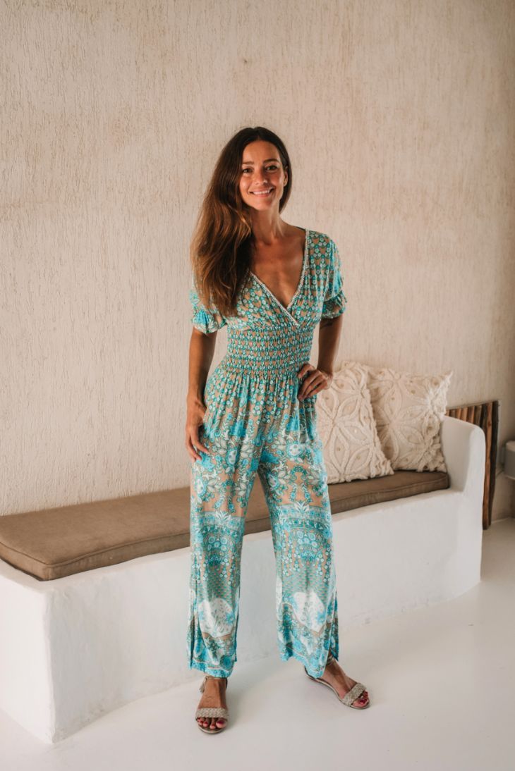 Mediterranean dream meets modern boho chic, with our Kloë Jumpsuit, this time in our stunning geometric flower print. The Hand-embellished shoulder slits and mirrored v-neckline in the front and back offer divine elegance. Made from super soft Rayon, in a choice of Blue or Lilac. The carefree elasticated waist cultivates an hourglass figure with a delicate necktie and side seam pockets for ease.